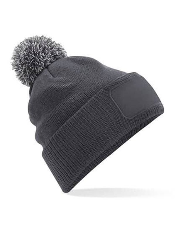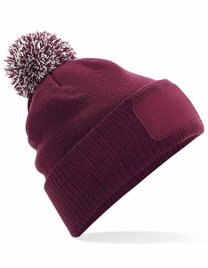 Eigenschaften: doppellagiger Strick, Rippabschluss, 2-farbiger Bommel, Twill-Aufnäher 10×5 cm, 40 °C waschbar